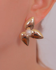 Banho - Brinco Banhado a Ouro 18k Pedraria - Pérolas